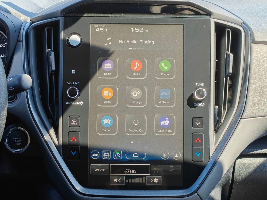 - Radio: Subaru 11.6" Multimedia Plus System -inc: AM/FM stereo, HD Radio, multi-touch gesture high resolution display screen, voice activated controls, Bluetooth® audio streaming and hands-free phone connectivity, Bluetooth® hands-free SMS text messaging connectivity, iPod control capability, smartphone integration: wired and wireless Android Auto w/full screen view and wireless Apple CarPlay w/full screen view, USB and Over The Air (OTA) audio system update, steering wheel audio system and Bluetooth® control switches, 6 speakers (2 dash panel tweeter, 2 front door and 2 rear door), illuminated 3.5mm auxiliary input jack, illuminated front USB A and C input/charge ports, connected services operation indicator, SOS emergency assistance: red SOS button and enhanced roadside assistance: blue i-button