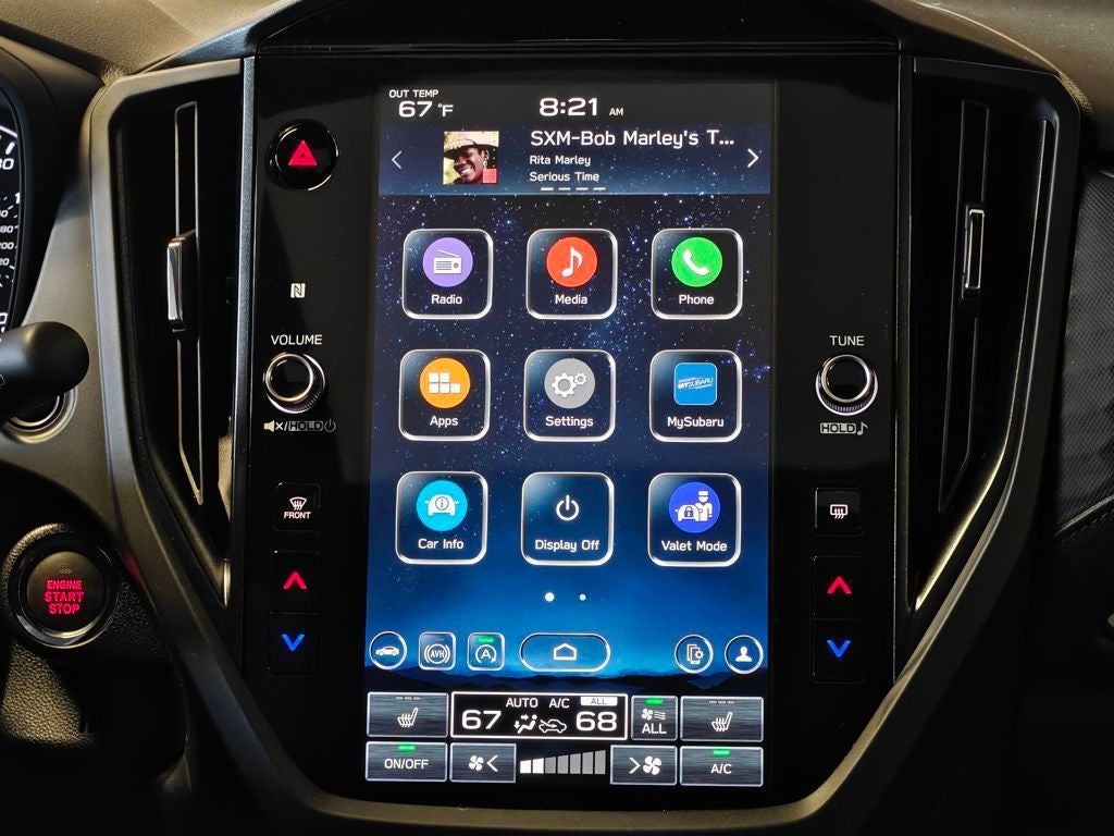 - Radio: Subaru 11.6" Multimedia Plus System -inc: valet mode, integrated center information display, AM/FM stereo HD Radio, multi-touch gesture high resolution display screen, voice activated controls, Bluetooth® audio streaming and hands-free phone connectivity w/SMS text messaging (refer to Subaru.com for cellphone compatibility), iPod control capability, smartphone integration: Android Auto and Apple CarPlay w/full screen view and wireless connection, SiriusXM satellite radio w/360L (free 4-month trial subscription included), USB and Over The Air (OTA) audio system update, steering wheel controls, 6 speakers, 3.5mm auxiliary input jack and roof mounted audio and satellite antenna