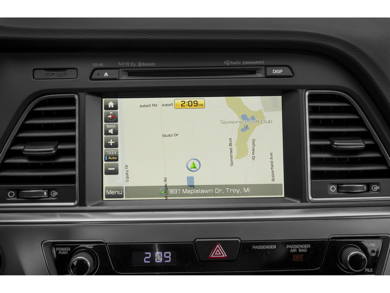 - Radio: AM/FM/SiriusXM/CD/MP3 Audio System -inc: iPod/USB and auxiliary inputs, 7 Dimension speakers w/multicasting, (2 front, 2 tweeters, 2 rear, subwoofer, and external amplifier - 360 watts) and 5-inch color touchscreen display