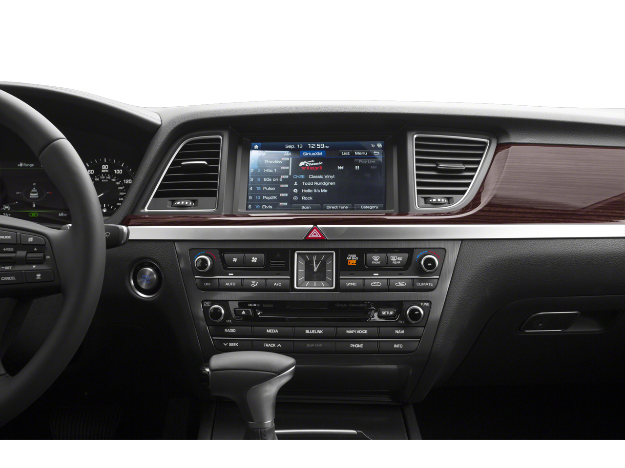 - Radio: AM/FM/HD/SiriusXM/MP3 Audio System -inc: 7 speakers w/subwoofer, 6-channel internal amplifier, 8" touchscreen, navigation system w/voice recognition, HD Radio Traffic, Apple CarPlay, Android Auto, Bluetooth® hands-free phone system w/audio streaming, steering wheel controls, 2 front USB ports, 1 front 12v power outlet and Genesis Connected Services