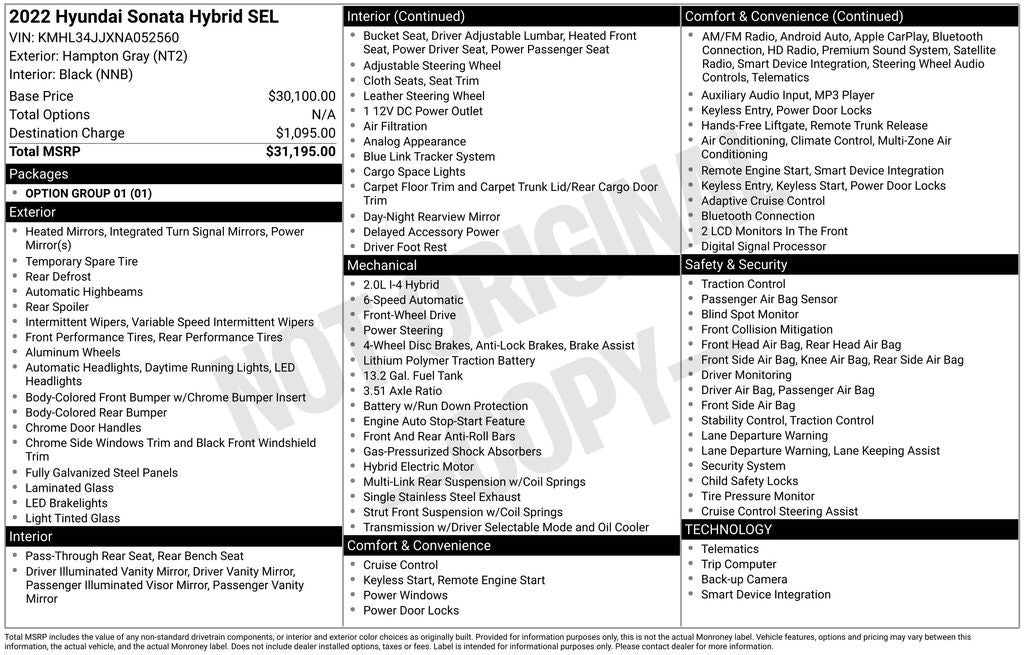 - Vehicle Name: Hyundai Sonata Hybrid