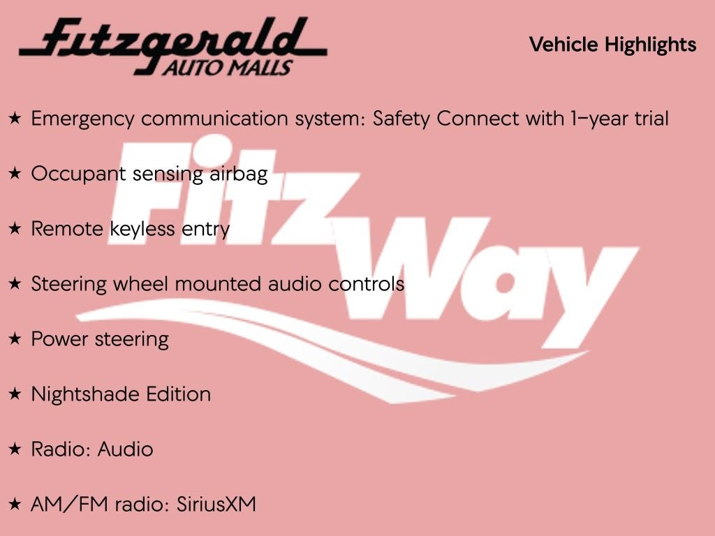 New Price! White SE Nightshade FWD CVT 2.0L I4 DOHC 16V Back Up Camera, Bluetooth®, Alloy Wheels, Audio Controls on the Steering Wheel, Clean Cloth Interior, Cruise Control, Dual Climate Control, Proximity Keyless Entry, Rear View Camera, Satellite Radio, Side Air Bags, ABS brakes, Air Conditioning, Alloy wheels, AM/FM radio: SiriusXM, Apple CarPlay/Android Auto, Auto High-beam Headlights, Brake assist, Delay-off headlights, Dual front impact airbags, Electronic Stability Control, Emergency communication system: Safety Connect with 1-year trial, Exterior Parking Camera Rear, Four wheel independent suspension, Front Bucket Seats, Fully automatic headlights, Heated door mirrors, Knee airbag, Leather Shift Knob, Low tire pressure warning, Nightshade Edition, Occupant sensing airbag, Outside temperature display, Overhead airbag, Power door mirrors, Power steering, Premium Fabric Seat Trim, Radio: Audio, Rear seat center armrest, Rear window defroster, Remote keyless entry, Security system, Split folding rear seat, Steering wheel mounted audio controls, Telescoping steering wheel, Trip computer, Turn signal indicator mirrors, Wheels: 18 Black Painted Alloy.