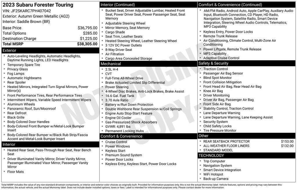 - Vehicle Name: Subaru Forester