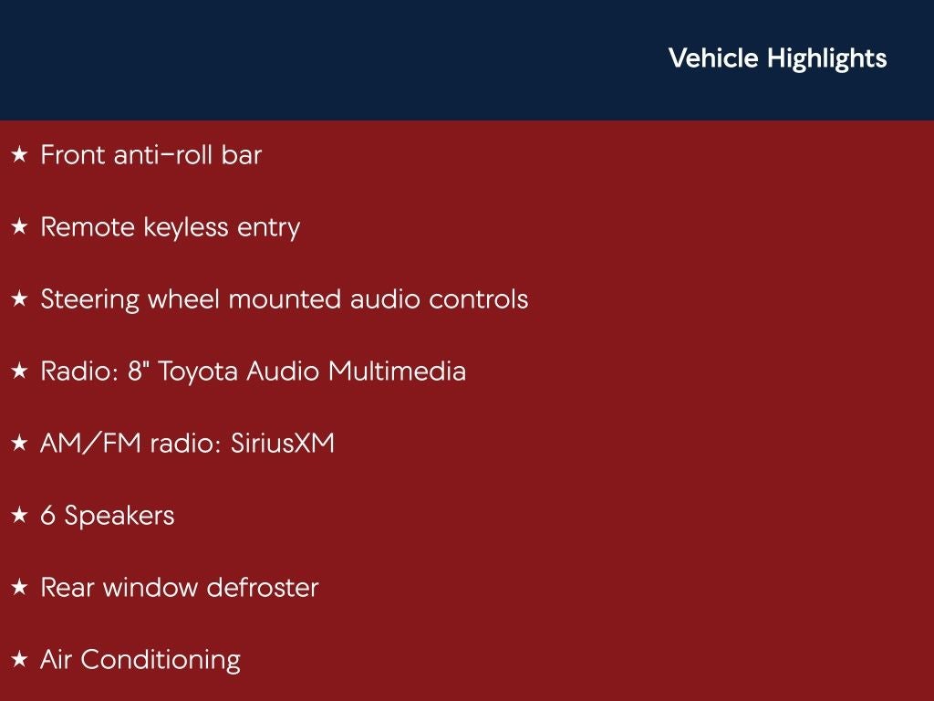 - Radio: 8" Toyota Audio Multimedia